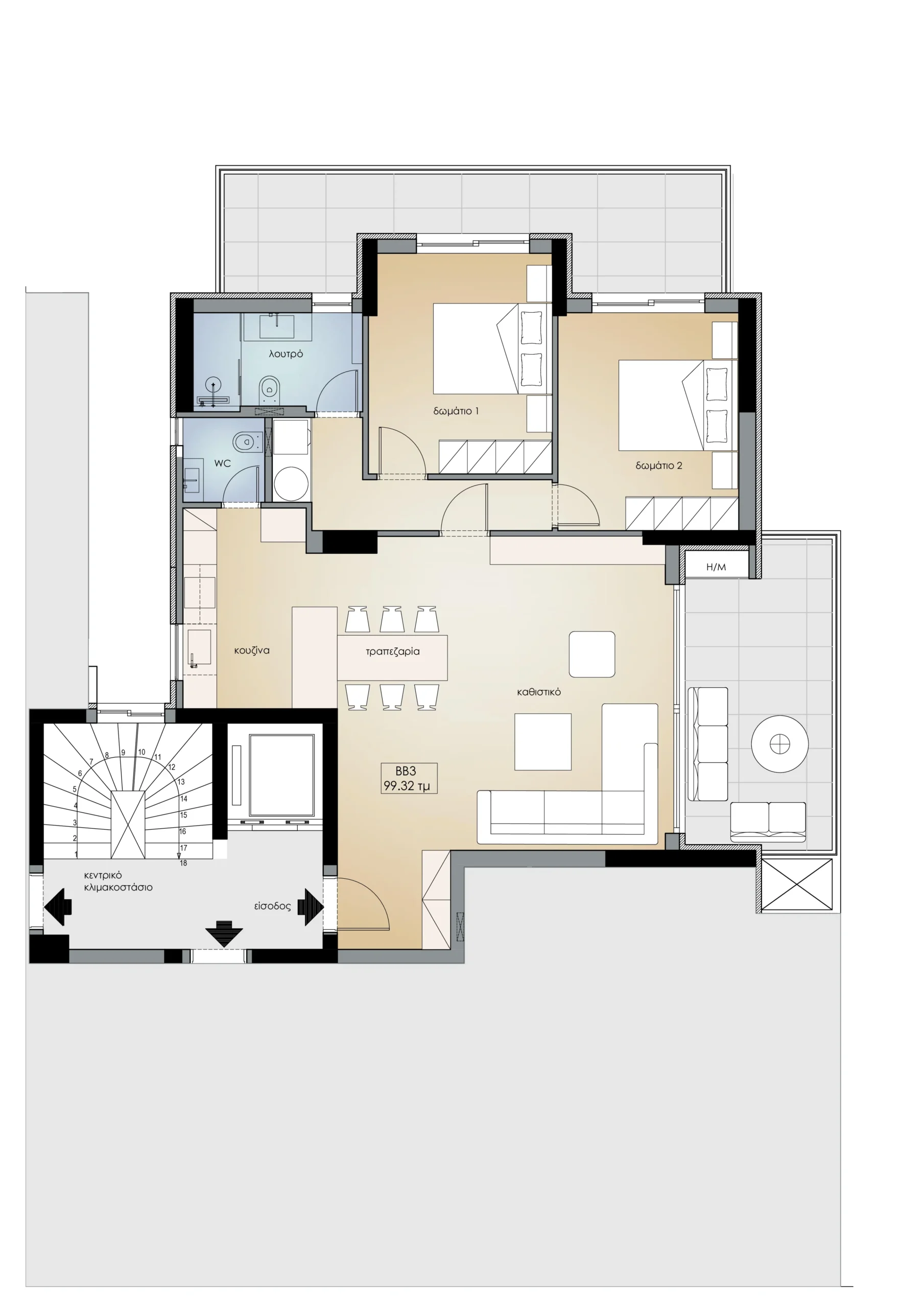 - ΕΠΙΦΑΝΕΙΑ ΔΙΑΜΕΡΙΣΜΑΤΟΣ: 99.32 τμ