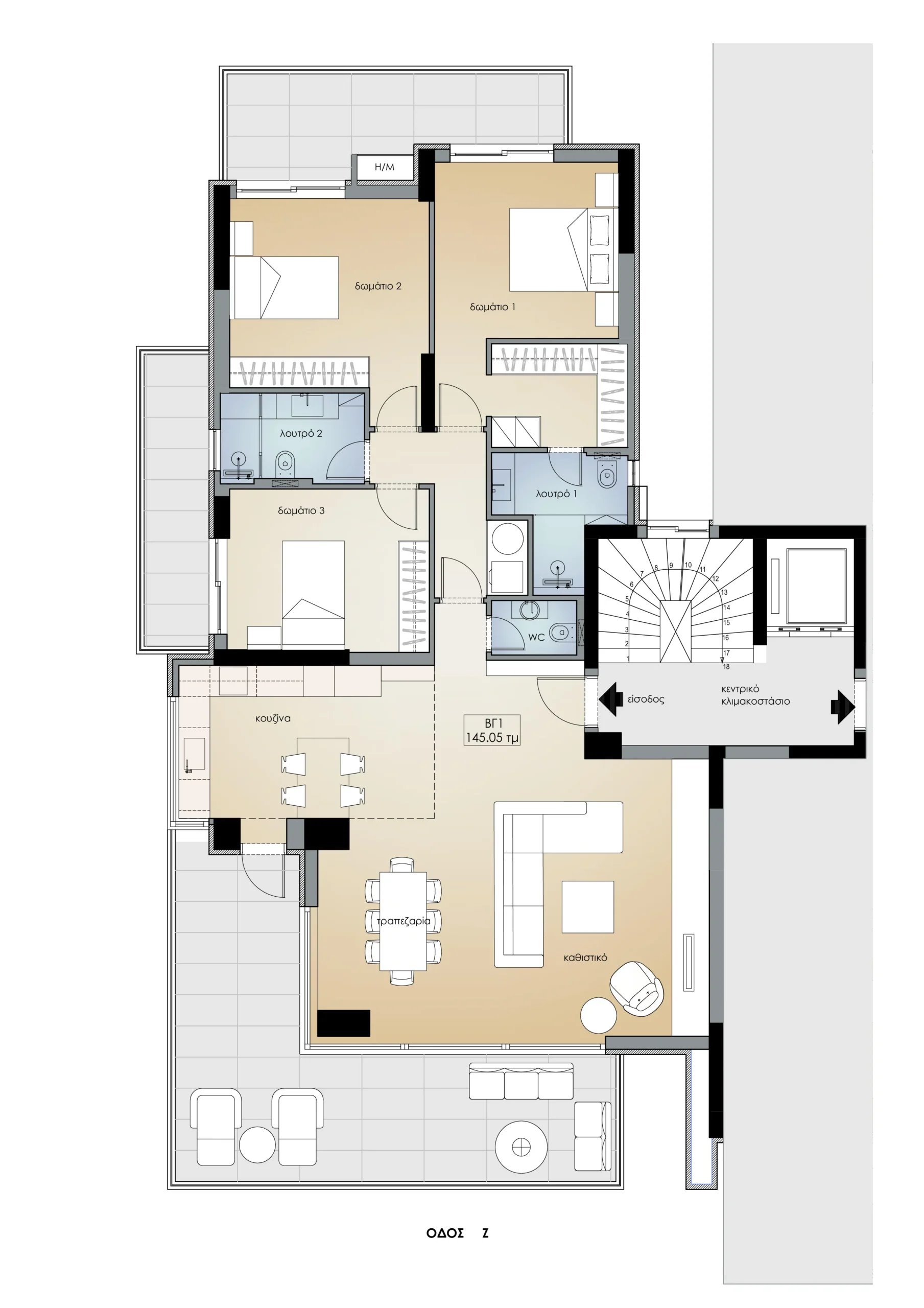 - ΕΠΙΦΑΝΕΙΑ ΔΙΑΜΕΡΙΣΜΑΤΟΣ: 145.05 τμ